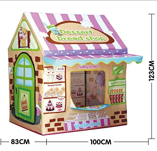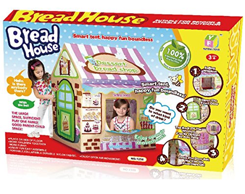 -. Feature : This Playhouse Bread House is an adorable gift for Girls and boys. Fast and easy set up / The lightweight tent with water proof floor is great for indoor or outdoor use / Small size is easy to fit in compact home or kids room, Ideal for home, backyard, parks, parties, day care and more / Great landscape graphics, Comes complete with sturdy poles for quick and easy assembly / Material: 100% Polyester fabric & Plastic pole, Tent Dimension in inch: 100cm (L) x 83cm (W) x 123cm (H)