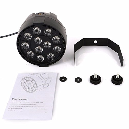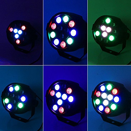 Mini Sound Activate DMX Control 12 LED RGBW Color Mixing Par Spot Light Disco Party DJ Music Show Projectors Stage Lighting Effect (Black)