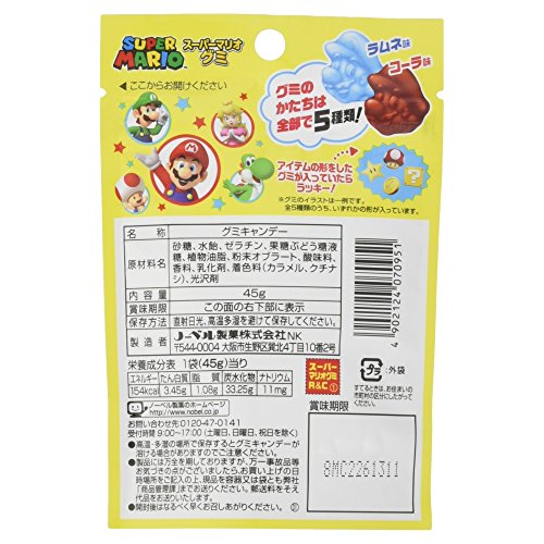 -. Feature : Ingredients: sugar, syrup, gelatin, fructose glucose liquid sugar, vegetable oils and fats, powder oblate, acidulant, flavoring, lsifier, caramel, gardenia, brighteners / NET:45g / Ramune Soda & Cola taste