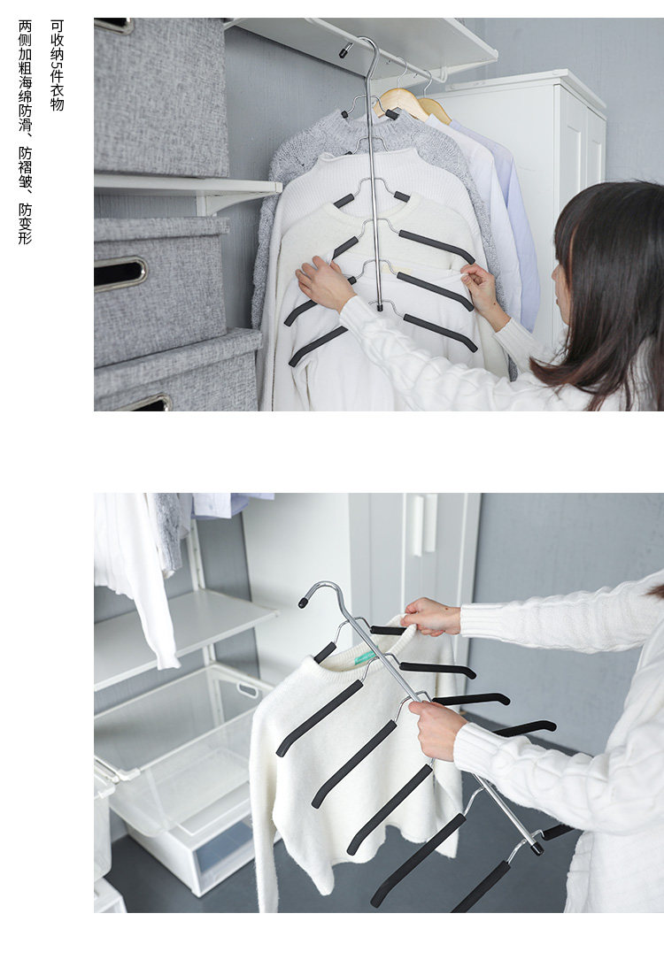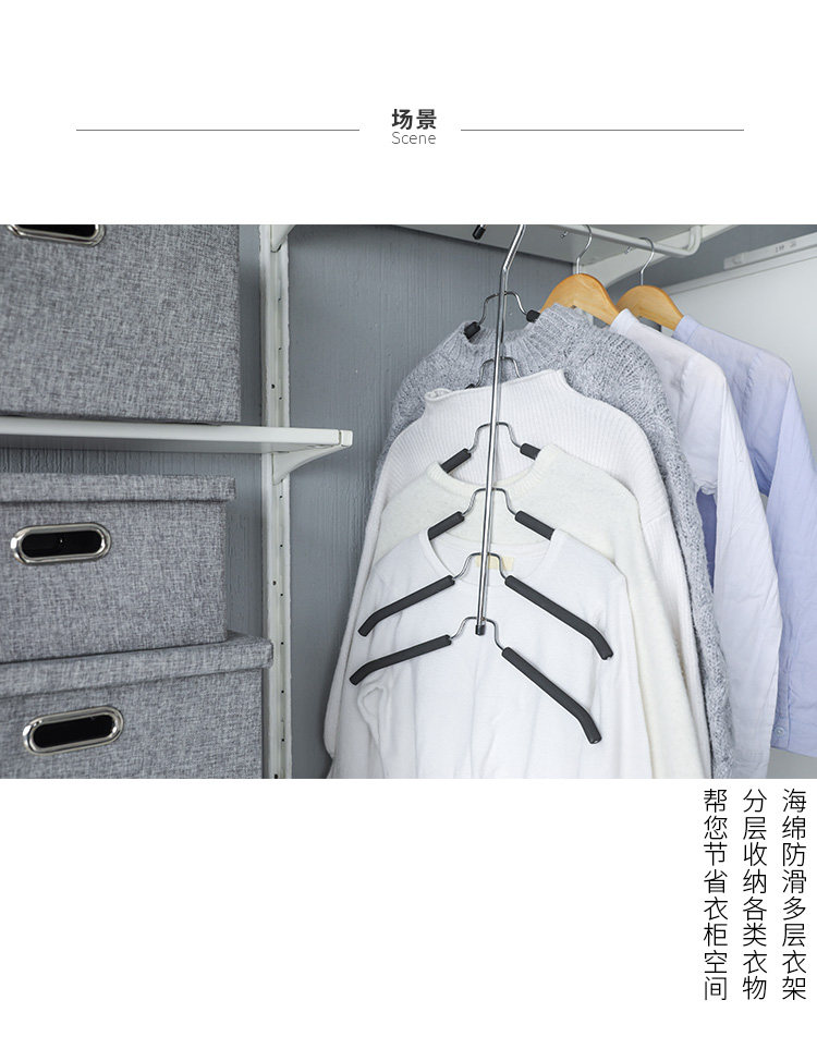 海绵无痕多层衣架防滑多用衣架不锈钢多功能衣柜衣撑