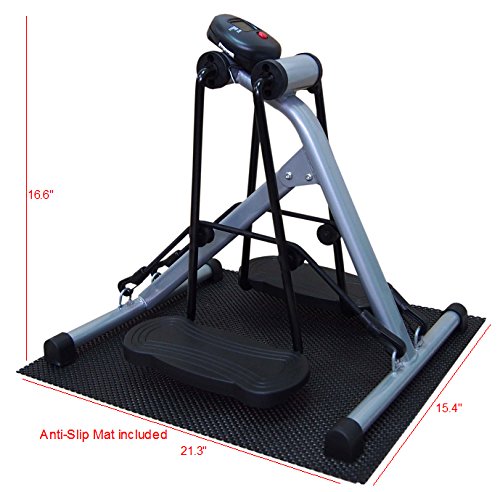 Nothing more enjoyable than sitting on a couch watching a ball game while you can still work out on your legs, thighs and hip. BetaFlex Sit and Swing Exerciser is designed to inspire you, giving you the opportunity to bring out a sturdy, slim and strong legs. Hanging legs on the station and swinging forward and backward with zero gravity, it maximizes relaxation on ankles, joints, calf and hip, and thus its tension is relieved. By stretching your ankles and legs, all tendons are activated and it improves body circulation and makes muscle to be more elastic and flexible. The LCD computer keeps track of total strides, numbers exerciser strides per minute, working time, and calories consumption during exercise. With anti-slip mat and tension controlled resistance, fully assembled and yet foldable, convenient for moving and storage, simply hide it away in the corner or slide it in under desk after use. Giving yourself a healthy living style, let this Sit and Swing Exerciser help you.