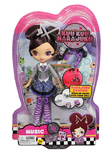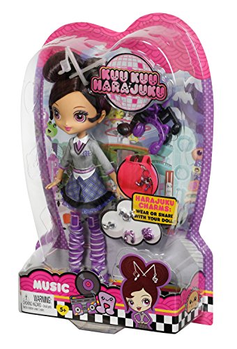 Meet Music, the feisty, fearless member of the HJ5 band. She won't put up with anyone picking on her friends! Inspired by the cool pop Nickelodeon series Kuu Kuu Harajuku, her fashion doll has signature pulled up hair with music stick accents and wears a trendy, coordinating skirt and sweater. She also comes with adorable Harajuku charms to customize her outfit and the included child-size hair accessory! Wear, share and show off your kawaii pride with Music! You can also choose her band mate dolls: G, Love, Angel, and Baby – with their themed charms and accessories, for even more Harajuku fun! Each doll sold separately, subject to availability. Colors and decorations may vary.Feature