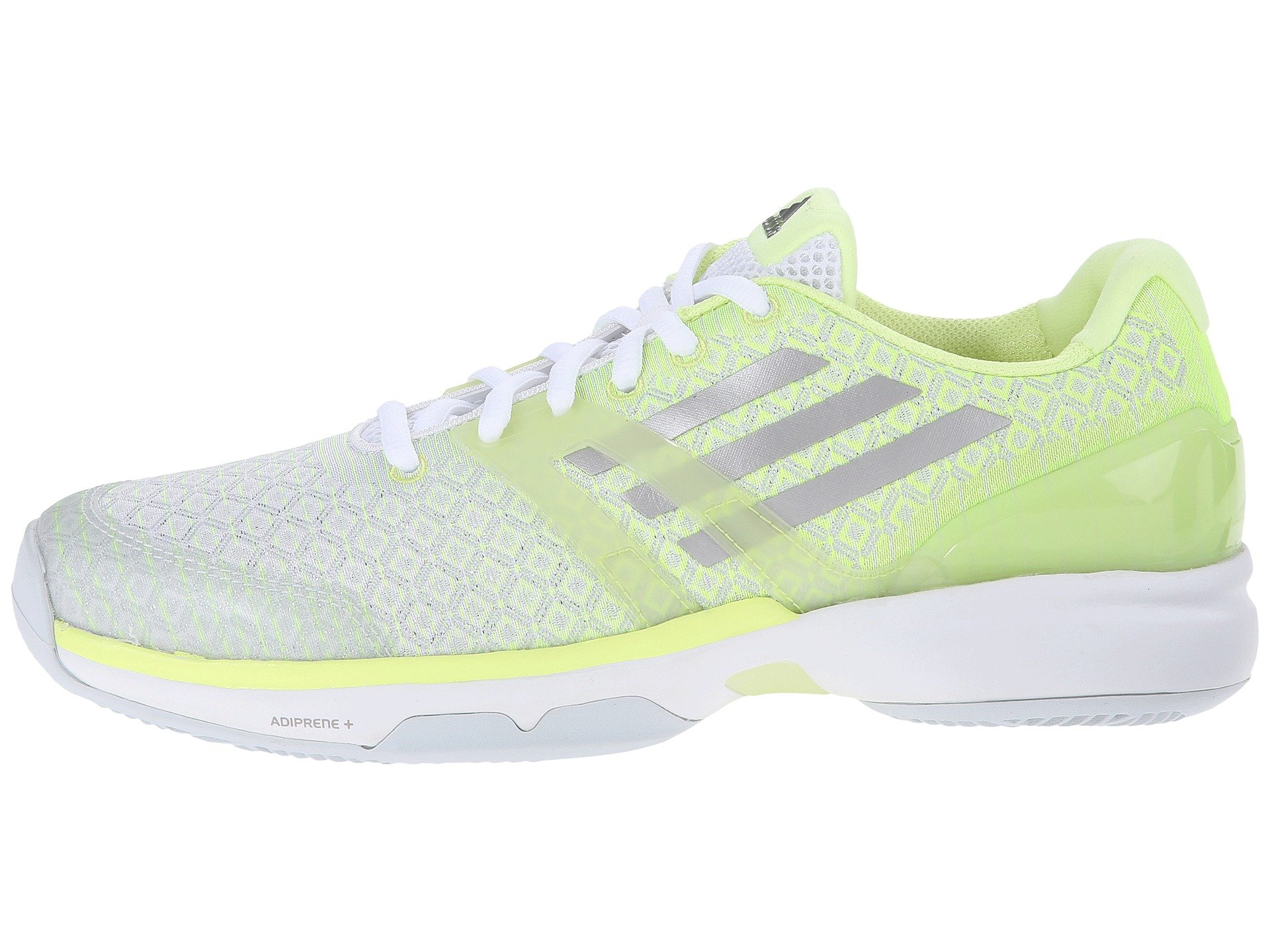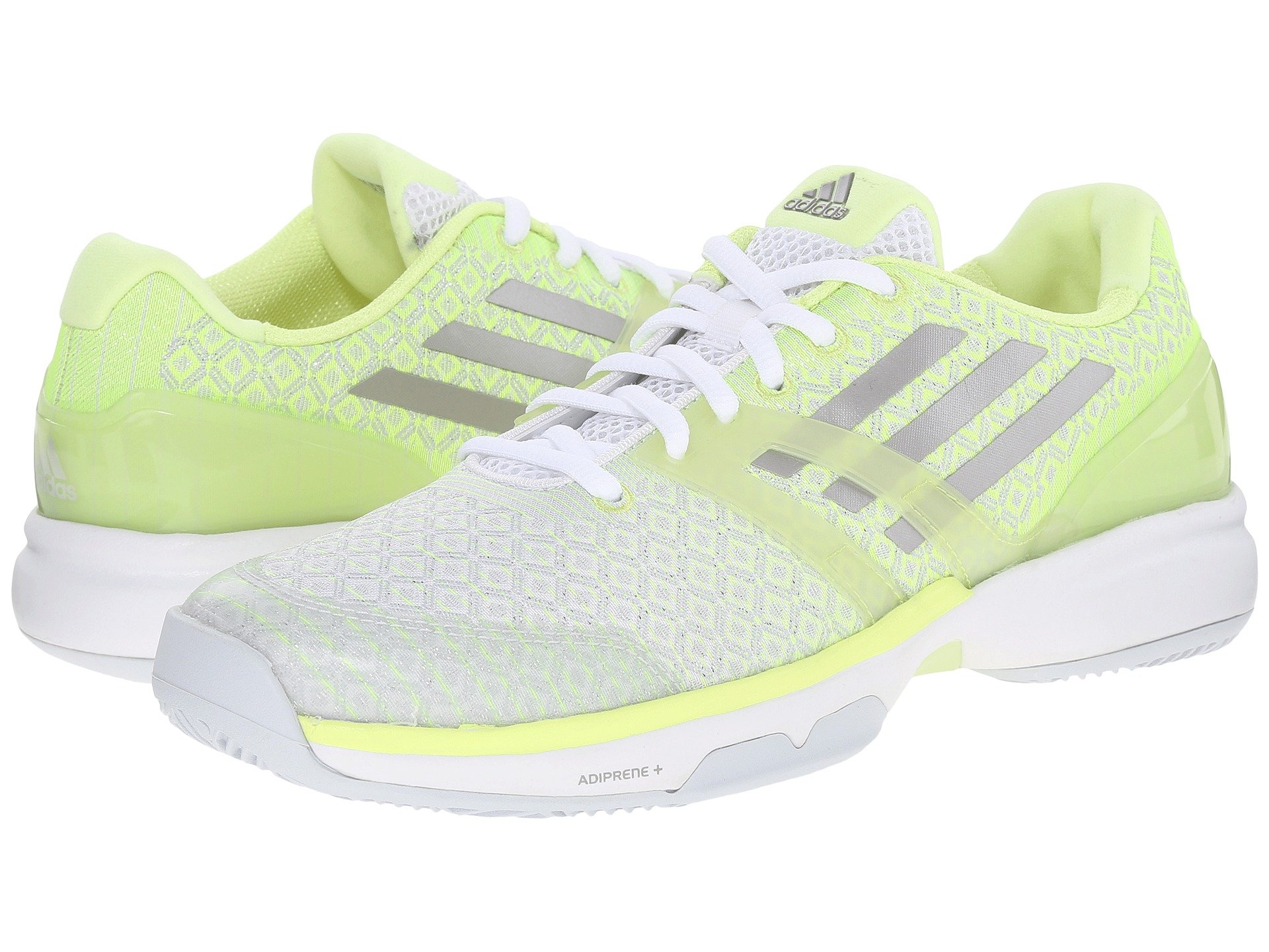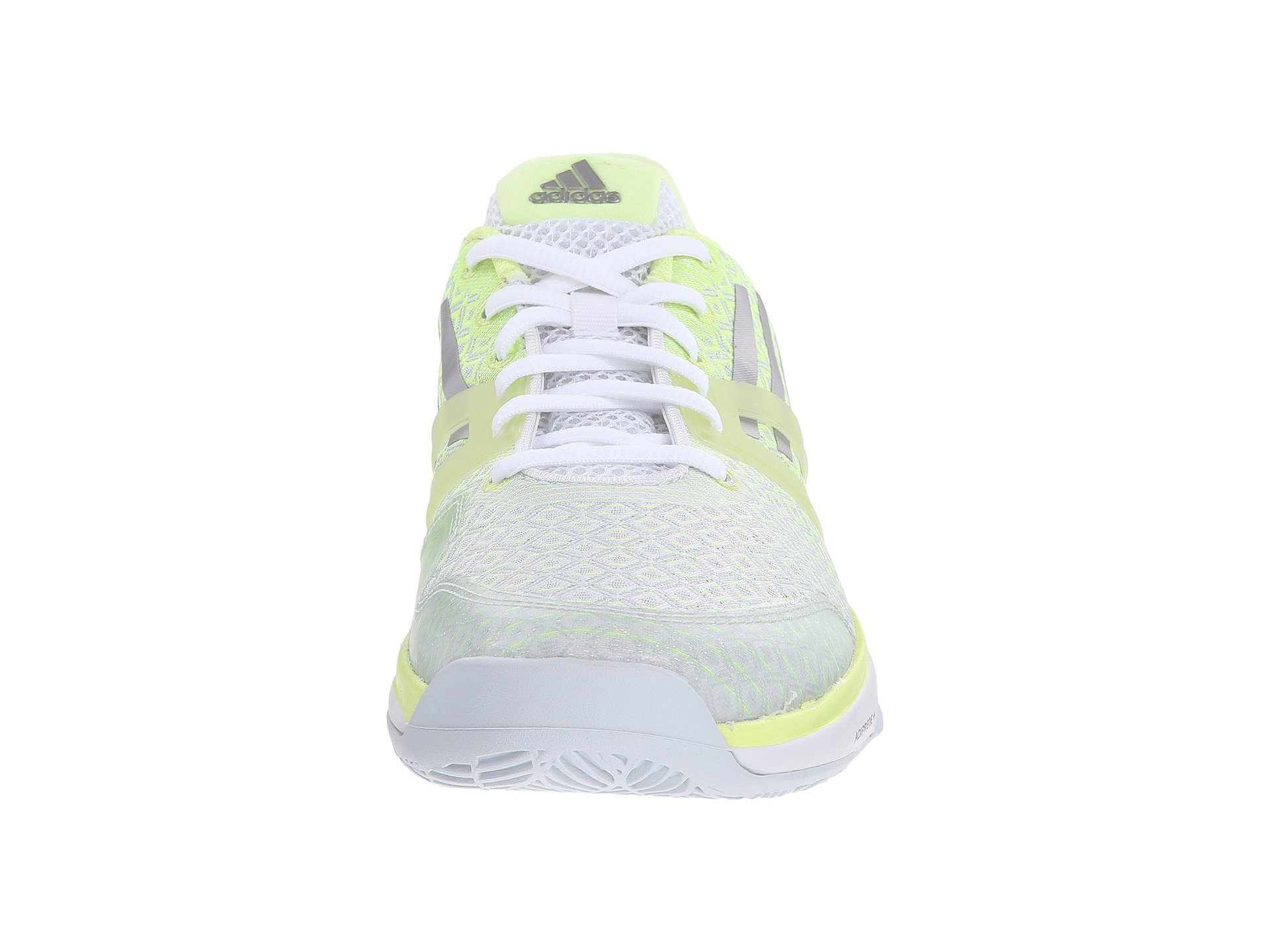 | Product Information SKU: #8555368Work on your lightning fast speed and groundstrokes in the light-as-air Adizero Ubersonic.Synthetic and textile upper.Mesh cage around the forefoot. ADITUFF™ for best abrasion resistance in the toe area. TORSION? system for midfoot integrity.External dual-density SPRINTFRAME construction ensures maximum heel support while preventing pronation. ADIPRENE? under the heel offers superior cushioning at impact. ADIWEAR? 6 outsole offers the ultimate in high-wear areas for durability. Imported. Product measurements were taken using size 7.5, width B - Medium. Please note that measurements may vary by size.Weight of footwear is based on a single item, not a pair.Measurements: Weight: 9 oz |