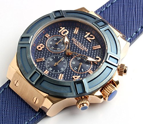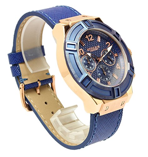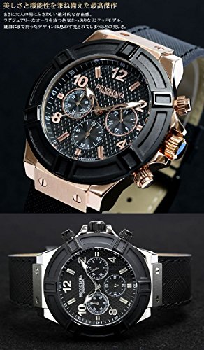 블루《기아나》 [블루기아나]BROOKIANA 손목시계 워치 10기압 방수 크로노그래프 레더 밴드 비지니스 캐주얼 맨즈 (블랙×로즈)