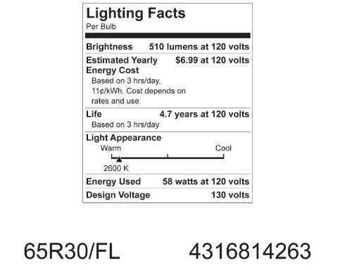 - 65-watt Incandescent lamp provides about 2000-hours of running life, which means replacing your bulbs less often