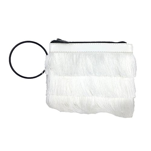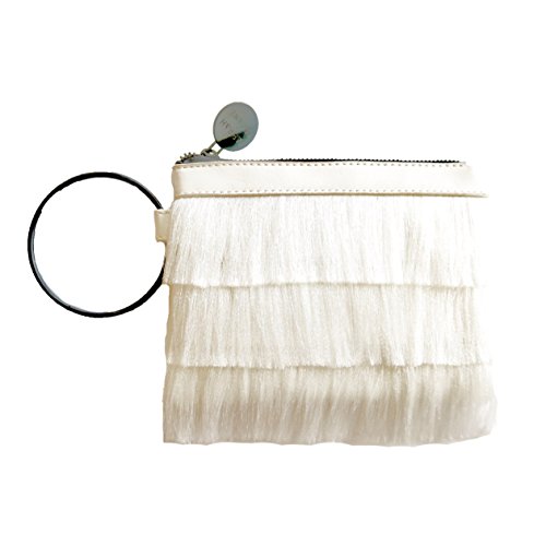 (Farrah Sloane)/Accessories/Handbags/DIRECT FROM USA/Farrah Sloane Symi Metallic Fringe Wristlet Bracelet Clutch, White