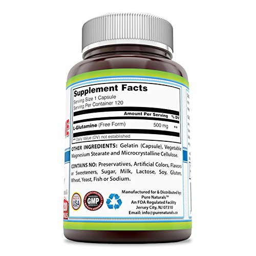 L glutamine or glutamine is an amino acid that is found naturally in the human body and that is stored primarily in the muscle tissue. Your body relies on glutamine to perform many important tasks. The amino acid: Promotes the production of proteins and the development of protein-making structures in the cells Assists with the development of new muscle cells Aids in the repair of muscle tissue following exercise Supports immune system activity to help fight germs that causes illnesses and infections Studies suggest that strenuous workouts cause natural glutamine stores in the muscles to become depleted and that it can take days for the amino acid levels to return to normal on their own. As a result, health care professionals frequently recommend that athletes, bodybuilders and fitness enthusiasts who work out regularly use a glutamine supplement to replenish their bodies' supply of the amino acid more rapidly. Pure Naturals L-Glutamine 500mg Capsules makes it easy to increase glutamine levels in the muscles. Our l glutamine Capsules supply an l glutamine 500mg dose, making each tablet the equivalent of glutamine 1g (single gram) servings of glutamine powder. Unlike powder supplements, our glutamine Capsules do not require any type of mixing or stirring. You can simply take the glutamine Capsules with a glass of water and get on with your workout or your day. Also, our glutamine 500 caps are free of the sugar and artificial sweeteners and flavors! Simplify sports and fitness nutrition with the easy-to-take l glutamine supplement solution. Order Pure Naturals L Glutamine Capsules Supplement and get 120 of our l glutamine 500mg Capsules.Feature