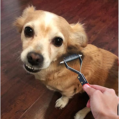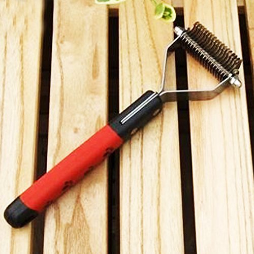 EFFECTIVELY REMOVIN MATS AND TANGLES--Easily remove mats and tangles from a variety of coat types by 10 Stainless steel teeth matt breaker / detangler. Give you the best result of dematting for the longest and densest coats of dogs, cats, rabbits, long haired breed pets." Grooming Undercoat Rake"