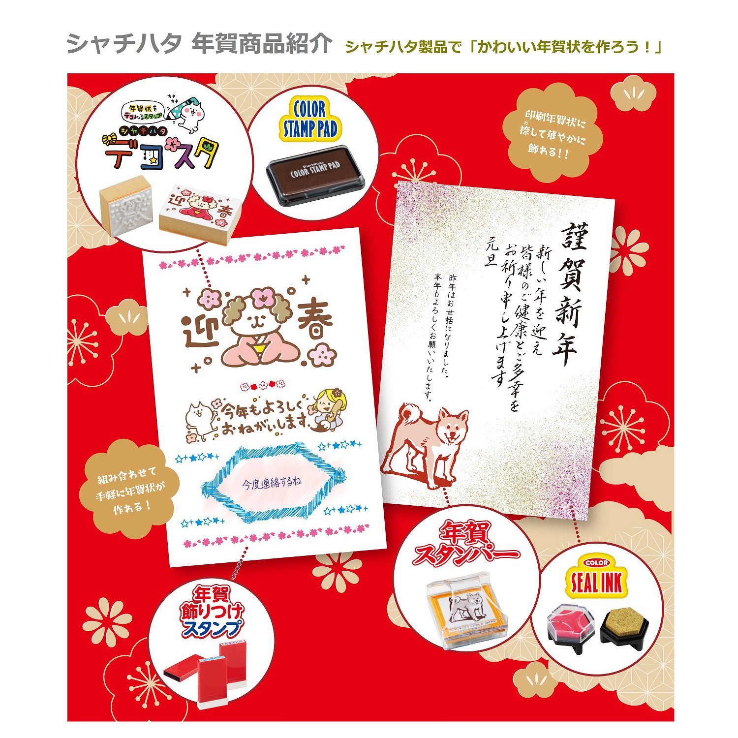 New Year's card stampers can print with ponpon without stamp pads.