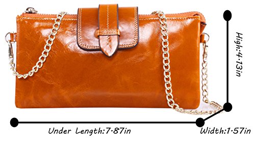 - Feature : 8 Credit Card Slots.2 large bills pocket.1 zippered pocket in back.2 Full length pockets with zippered also can carry change or coin. / Have a wrist strap and long link-chain shoulder strap, easy to carry. Easily hold your Samsung Galaxy Note4 /I phone 6 Plus. / Western Style. Available in 3 attractive colors to fit your personal style. / Size info:(L) 7.48*(H) 4.13 *(W) 1.18 in, and weight is 0.57 pounds. / 【!】HESHE is an US registered trademark, unauthorized sale without permission, we will investigated for legal responsibility.