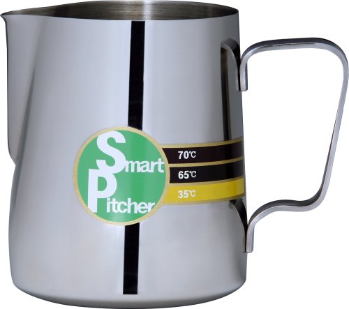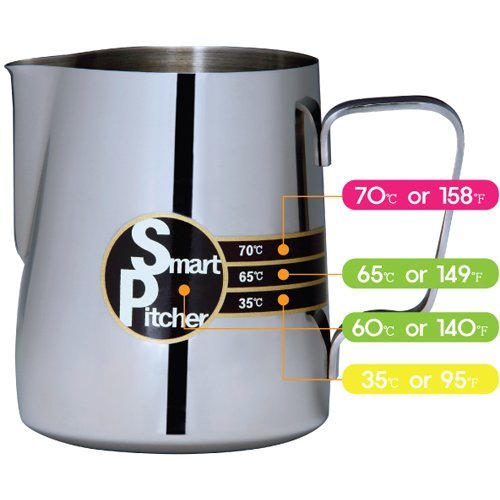 SMART PITCHER Espresso Coffee Milk Frothing Pitcher With Built-In Thermometer, Stainless Steel (12 oz)