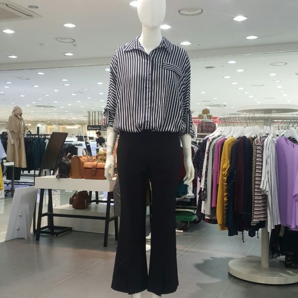 스트라이프셔츠에 밑단셔링이 포인트되는 블루종셔츠입니다