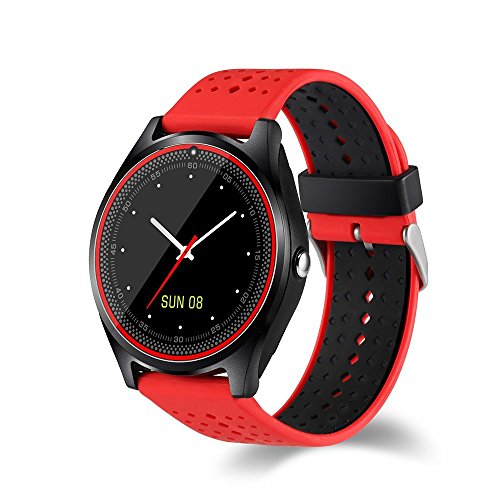 -. Title : V9 Smart Watch Smartwatch Bluetooth Sweatproof Phone with Camera TF/SIM Card Slot Band Replaceable for Android and IPhone Smartphones for Kids Girls Boys Men Women