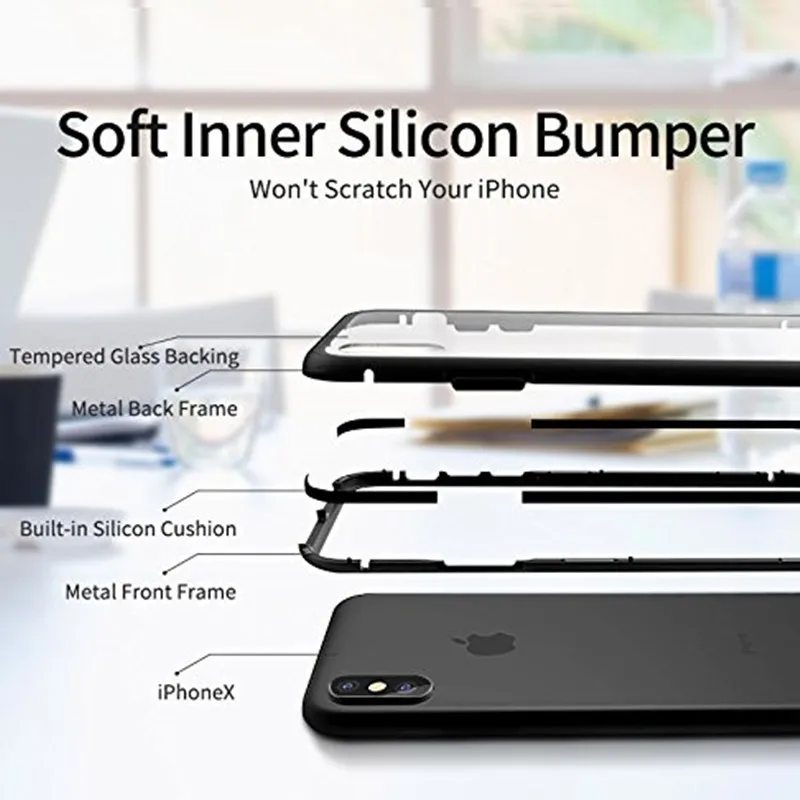 Material:Built-in Magnets+Metal Aluminum Bumper+Tempered Glass Back