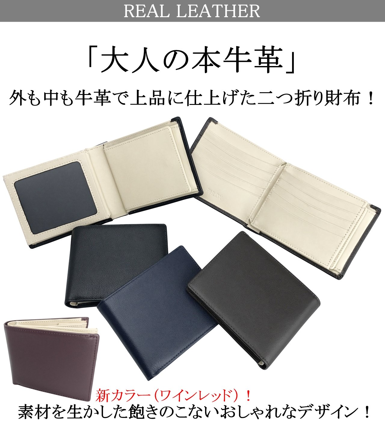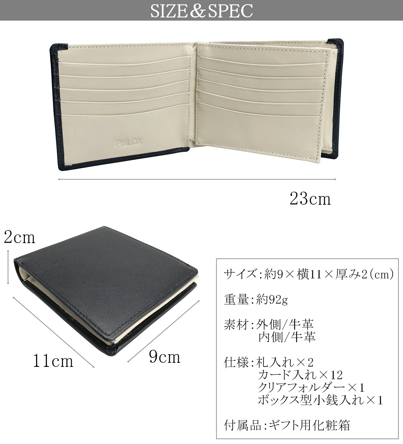 PHLOX (フ ロ ッ ク ス) Bi-fold wallet genuine leather