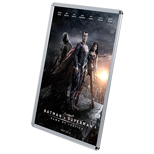 Give your treasured movie posters the attention they deserve! The very same movie poster frames as supplied by us to movie theaters everywhere. Also used in restaurants, community centers, schools, galleries or at home to showcase your favorite poster or artwork. This Solid Aluminum frame is made to the highest industry standards, the best quality available at the lowest price. It features a Super White Styrene Backing that offers some water resistance and gives the movie posters 'pop'. Strong, yet lightweight and easy to use. The front snaps open on spring hinges to change posters- no tools and removal from wall required. Flexible PVC lens offers non-glare and UV protection. Comes with all the necessary hardware & concealed mounting holes. This frame can be hung both vertically and horizontally. This is the industry standard- we supply the world's leading brands- Disney, NASA, Walgreens, ABC, etc. Buy with confidence from industry's best: SnapFramesDirect.Feature