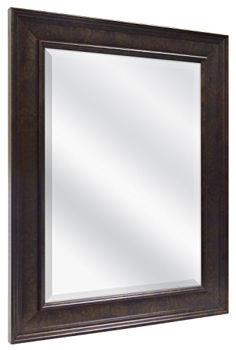 The MCS framed mirror series of fashion mirrors are framed with classic moldings with foil finishes. The overall size of the mirror measures 21.5 Inches by 27.5 Inches and can be hung horizontally or vertically. The mirror is 15.5 Inches by 21.5 Inches with a 1 inch bevel. Very nice styling fit for bedroom, bath, or living room. The heavy duty hangers are already mounted to the back of the mirror. Model 20676 has a 3 inch frame molding in a bronze finish.Feature