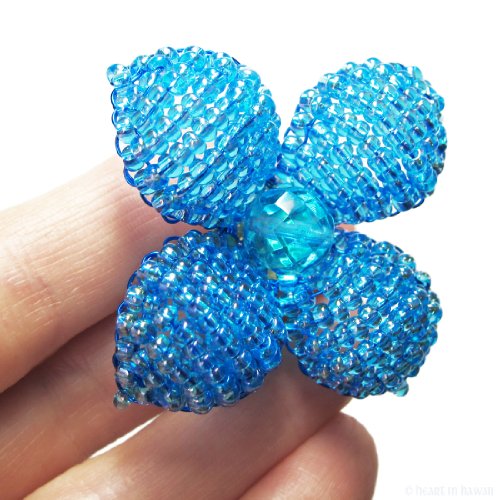 - Title : Makalapua Hawaiian 4 Petaled Beaded Flower Brooch - Aqua Blue