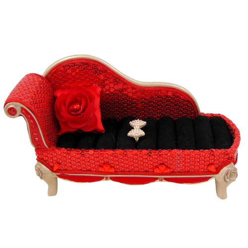 - Title : Sequined Rose Chaise Lounge Ring Holder, Red