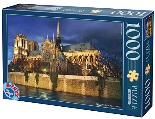 Studio : D-Toys Publisher : D-Toys Binding : Toy Product Description Released in 2014, explore the history and architecture of the city of romance with this eye-catching image of the illuminated Notre-Dame Cathedral. The Around the World Collection takes you all over the globe with fascinating photography of famous landmarks and cities. Each of these gorgeous puzzles contain 1000 pieces and measures 18.5 by 26.75 inches when complete. Manufactured in Romania, this fine quality jigsaw puzzle contains clean edged pieces that interlock effortlessly. D-TOYS has been manufacturing high quality puzzles since 2001. Each puzzle is produced on recycled content and contains only the highest quality materials. This includes using a linen finish on the box and puzzle pieces to reduce glare and provide a crisp image, as well as using a high grade blue board for the back of the pieces. 0