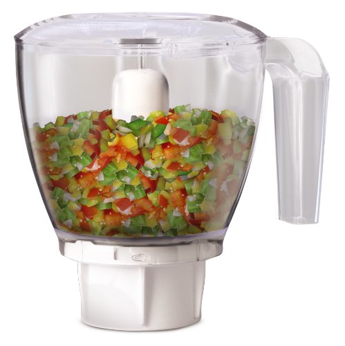 Oster 4861 blender food processor accessory. Ideal to chop, cut, grind and mix light dough. Lid tightly locks onto bowl and includes an opening to add liquids. Clear processing bowl with 3-cup capacity. Base easily sits on any Oster blender. Comfortable handle allows for easy handling of the bowl. Blade axe adjusts quickly onto the adapter. Sharp "S" shaped stainless steel blade processes a wide variety of foods in seconds.Feature