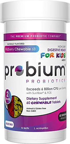 Kids Blend 6 B (age 2) Wild Berry 60 VegCapProbium Premium Probiotics Wildberry Chewable 6B promotes digestive health for children 2 and up. It is animal and gluten free, not to mention Non-GMO. Probium Premium Probiotics Wildberry Chewable 6B exceeds Billion CFU per serving of a Proprietary Blend of Bifidobacterium lactis and Lactobacillus acidophilus. Simply take one capsule a day for a healthy digestive tract