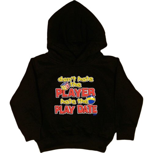Binding : Apparel Product Description DON'T HATE THE PLAYER HATE THE PLAY DATE Print dimensions approximately 6-1/2-inch x 6-inch. 2T-5/6 JUVY : RABBIT SKINS HOODED PULLOVER SWEATSHIRT : 60% cotton/40% polyester 8.0 ounce. Coverstitched waistband Coverstitching on shoulders, armholes and cuffs. Jersey-lined double-needle hem hood. Jersey-lined side-seam pockets. Ribbed cuffs and waistband. 30954 0