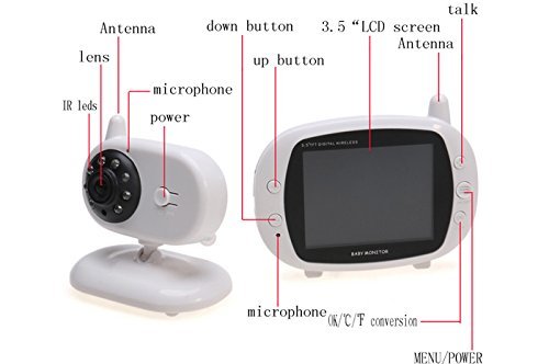 -. Binding : Electronics -. Brand : seepower -. Color : White/Black -. EAN : 0889811083903 -. Feature : Large 3.5" full color LCD display in sleek, compact unit with retractable antenna, with sound-activated LED display / Real-time high quality visual and audio monitoring.Maximum signal transmission up to 250m (820 feet) without blocking / Temperature detection function and real-time displayed on the LCD monitor to keep the comfortable environment. / wo-Way communication, get the voice from the nursery and calm baby with your voice too / Infrared Night Vision automatically adjust to the level of light in the room and transmit a clear image in low-light and darkened room conditions. -. IsAdultProduct : 0 -. Label : seepower -. Manufacturer : seepower -. Model : LYSB00YIV76AE-ELECTRNCS -. MPN : LYSB00YIV76AE-ELECTRNCS -. PackageQuantity : 1 -. PartNumber : LYSB00YIV76AE-ELECTRNCS -. ProductGroup : Baby Product -. ProductTypeName : CAMERA_DIGITAL -. Publisher : seepower -. Studio : seepower -. Title : Seepower Remote Wireless Indoor Baby Monitor With1 Cameras and 3.5-inch Color LCD Screen and Remote Camera Pa -. UPC : 889811083903