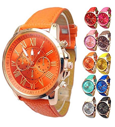 -. Feature : 100% brand new, 100% high quality, Real photo. / Leather wrist band for comfortable wearing. Wholesale price, So cheap. / A classic look, this fashion geneva roman numerals analog quartz wrist watch is specially designed with metal case and faux leather band / Watchcase Thickness:0.8cm/0.31" approx, Band Length: 23cm/9.06'' (Approx.) (Case is Included), Band Material:Leather / Notice:Due to the difference between different monitors, the picture may not reflect the actual color of the item