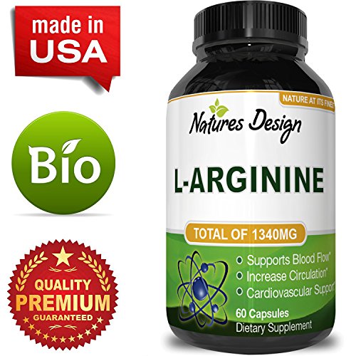 Are you getting enough L-Arginine from your diet? This potent amino acid is found in meats and other protein rich foods. It serves many important functions in the body, and is great for both heart health and exercise enhancement. Add our pure L-Arginine Supplement to your daily regimen for fast, effective benefits! L-Arginine supplements are great for your cardiovascular health because they promote better blood flow circulation. Some research indicates that it may even help lower blood pressure and bad cholesterol levels. This makes L-Arginine a great cardiovascular support supplement for both men and women. If you go to the gym often, you'll be glad to know that L-Arginine is a fantastic workout support and exercise enhancer that works fast. It is a precursor to Nitric Oxide, so taking L Arginine pills is a good way to boost your stamina, endurance, and strength. It is perfect for supporting muscle growth and getting a fitter body. Lastly, L Arginine is a common ingredient in male enhancement and libido boosting supplements because of how it naturally increases sex drive. Good blood flow is important for your body's arousal, so taking L-Arginine capsules can help improve your bedroom performance, libido, and lasting power. Make intimacy more satisfying! Natures Design supplements are exclusively made in the United States by GMP certified laboratories. All of our products are backed by a 100% Money Back Guarantee, since we aim for total buyer satisfaction.Feature