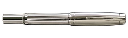 The Maestro Legrand series of weighty, All Sterling Silver fountain pens are produced in a limited edition of 10 pieces only. Each of these highly collectible pens are individually numbered. The design concept involved combining architectural elements of Art-Deco, such as straight lines, with elements of Art Nouveau style, such as a curved clip and the curved contour of the barrels. These elements are aided by the beauty of solid 925 Sterling Silver that was used to make the whole pen. In modern pen-making of sterling silver pens, sterling silver is normally used on pen cap and barrel only. In this unique pen, the barrel, cap, clip and other metal parts including gripping section are all made from solid 925 sterling silver. The pen parts such as fittings and clip require entirely to be made by hand due to the part's shape and properties of sterling silver. The pen itself is exceptionally balanced, considering its weight. Having a substantial weight of 2.6 ounces doesn't preclude the pen from being comfortable to write with. In fact, the weight distribution of the pen's body was designed to allow for the friction to be minimized at the tip of the pen, whether one is writing at a 90 degree or a 45 degree angle. The lower sterling silver barrel is engraved with a stripe pattern, and the screw-on cap is smooth polished sterling silver and hallmarked. The German-made solid 18K gold nib is fine sized and offers a silky smooth writing line. The pen comes with 1 extra stainless steel nib (Medium size) and a complimentary rollerball section with 1 rollerball refill, so the pen can be used as a rollerball pen by unscrewing the fountain section and screwing the rollerball section on to the barrel.
