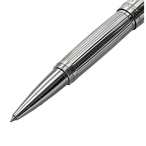 -. Feature : Supplied with wood gift box, (4) ink cartridges, sterling silver polishing cloth, ink converter, 1 extra St. steel fountain nib (medium size), 1 extra roller refill and roller gripping section, certificate and 3-year warranty card. / Ink cartridge is standard international size and is interchangeable with a variety of Fountain ink refills such as montblanc, parker, cross, waterman, Schmidt, Shaffer, s.t. DuPont, Visconti, pelican, dun hill, delta, krone, omas, ancora and cartier. / The pen is well balanced, considering its weight. Having a weight of 2.6 ounces doesn't preclude the pen from being comfortable to write with. The weight distribution of the pen's body was designed to allow for minimized friction at the tip of the pen. / Only 10 pieces were produced. Highly polished body without Rhodium plating. Each of these highly collectible pens are individually numbered. German-made 18-Karat Gold Fine size nib. / The design concept involved combining architectural elements of Art-Deco with elements of Art Nouveau style. The lower sterling silver barrel is engraved with a stripe pattern. The screw-on cap with curved clip is polished sterling silver and hallmarked.