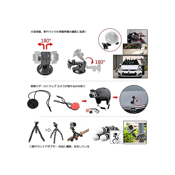3,【파트 택산】:자촬영봉(셀프《―》)/차량 탑재 흡반 마운트/(악수)손잡이/헤드 스트랩/클램프 마운트/360°회전 클립 마운트/낚시찌 그립/삼각 등 각각 필요한 파트를 모으고,여러가지 씬으로 사네 하실 수 있습니다.거의 순정 파트 하나의 가격에,이 정도의 파트를 겟 합니다.