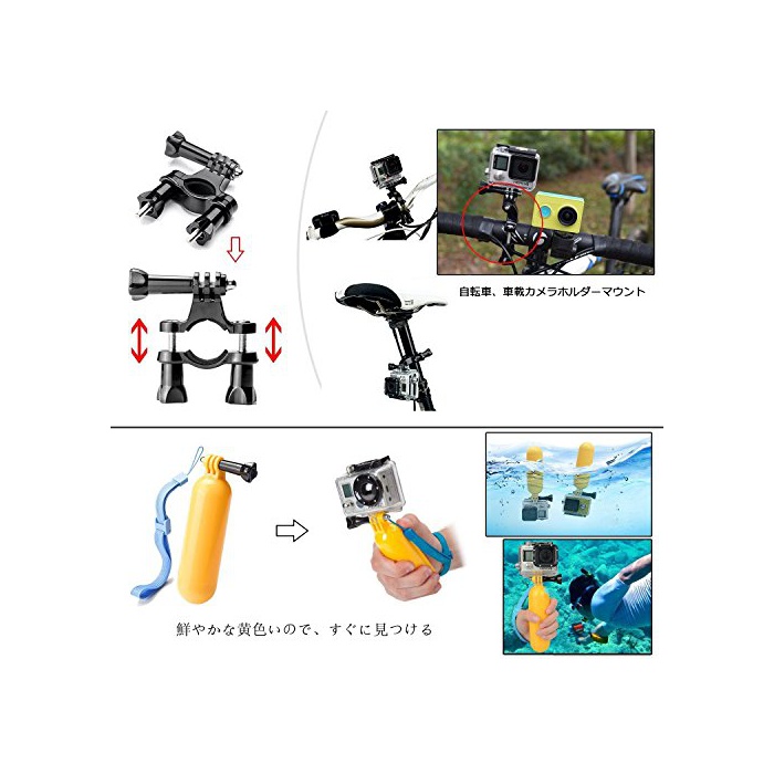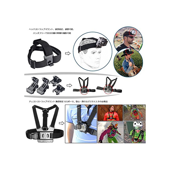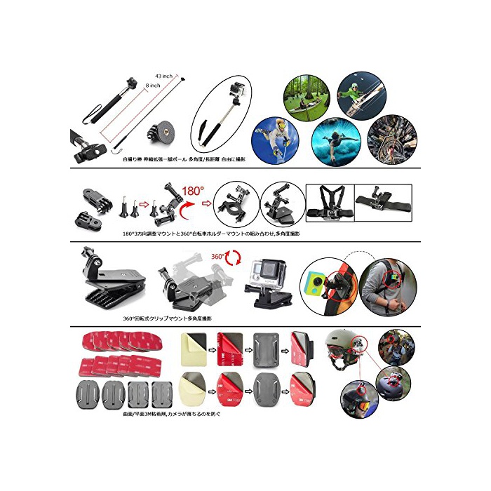 1,【응용 범위 넓다,X스포츠의 필수품】:아웃도어 스포츠에 있어서 빠뜨리지 않는 악세사리 세트입니다.스카이다이빙/수영/써핑/사이클링/스키/등산/스노보드 등에 최적입니다.자촬영봉이나 삼각 등 평상시 사용이 많은 파트도 이 키트에 존분있기 때문에,평상시의 생활 촬영으로도 추천입니다.아직,부분의 악세사리는,이동시에 카메라가 떨어지는 것을 방지 를 할 수 있습니다.그것은,X스포츠,등산 여행 등에 갈 때의 필수품,우수한 플레이 여행 용품 이에요.