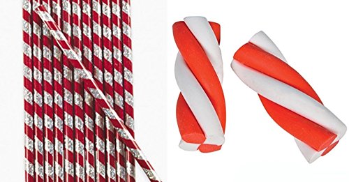 24 Candy Cane Stripe Christmas Pencils and 24 Candy Cane Twist Christmas Erasers - 48 Pc Set by happy deals