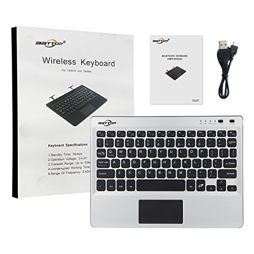 BATTOP Slim Wireless Bluetooth Keyboard with Multi-Touchpad Built-In Unique Autoshrink Hidden Stands for Windows, Android 4.0 and Above System Tablet/PC/ Smart Phone
