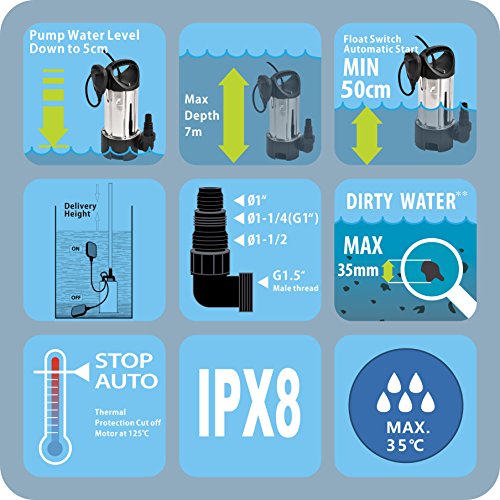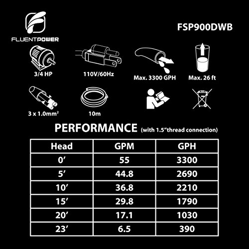 Maximum capacity of transferring water up to 3300 GPH and Max delivery height is 26ft