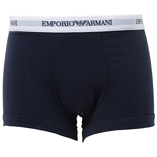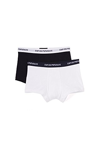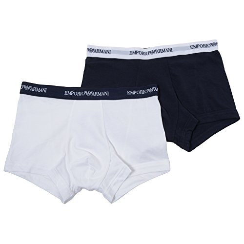 Emporio Armani Men's 2 Pack Cotton Trunk, White/Marine, Medium