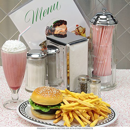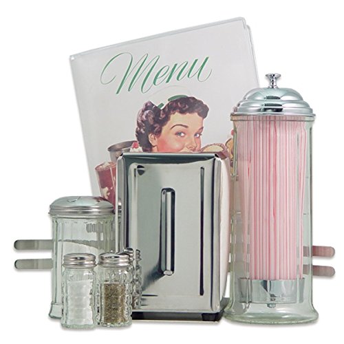 -. Feature : 8-Piece Set / Commercial Quality Restaurantware / Features Heavy Glass, Chrome and/or Stainless Steel Construction / Includes 75 Straws and Pack of 250 Napkins