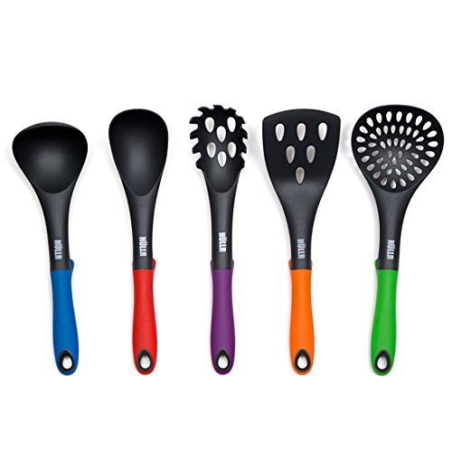 -. Feature : HULLR 11-Piece Kitchen Gadget Utensil & Knife Tool Set Include - Spaghetti Server, Skimmer, Basting Spoon, Slotted Turner, Ladle, 8" Chef Knife, 8" Slicing Knife, 8" Bread Knife, 5" Utility Knife, 3" Paring Knife, Block Stand. / Innovative, Functional & Colorful Design - Each Utensil Designed With a Special Raised Head To Prevent Contact While Resting On the Counter. All Knives Have Protecting Coating and Easy Grip Handles. / Ergonomic Handles - Easy and Soft Grip For Comfortable and Easy Use / Innovative Block Stand - For Easy Storage and Organization. / HULLR Premium German Design & Innovation