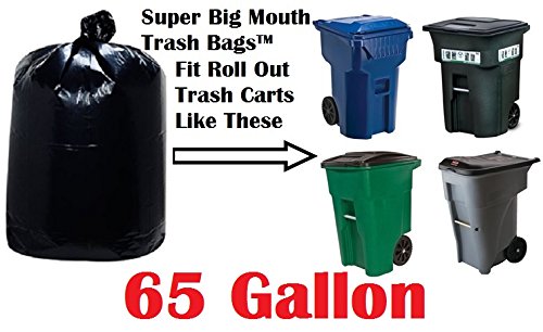 65 Gallon Super Big Mouth Trash Bags 10-Pack Plus 2 Free Rubber Tie Down Band