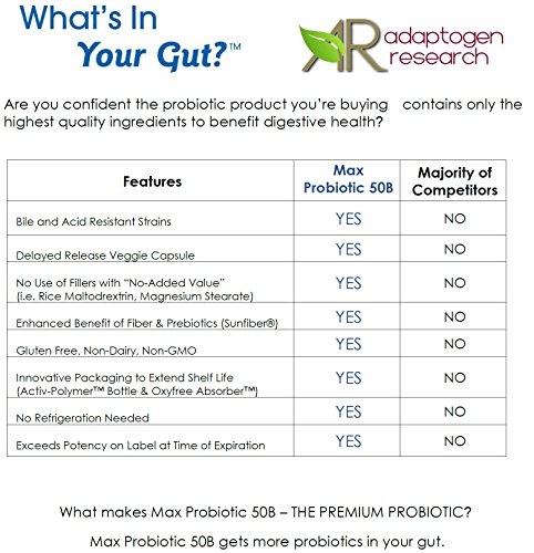 Max Probiotic 50 Billion CFU - 10 Beneficial Strains - 100 Billion CFU When Taken 2 Capsules - 60 Acid-resistant Delayed Release, Veggie Caps • By...