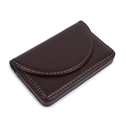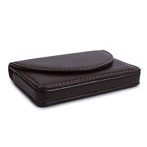Leather Business Name Card Holder Case Wallet Credit Card Book with Magnetic Shut Coffee
