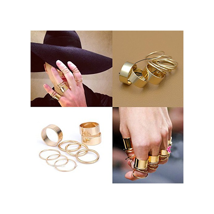 Yidea Home YideaHome 반지 링 9개 세트 심플 와이드 극세 레이디스 골드 고품질 금속감 경량 연마