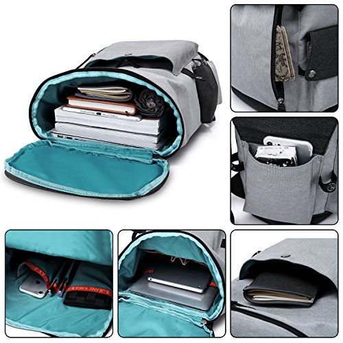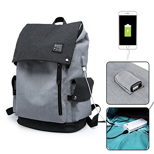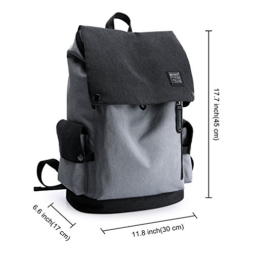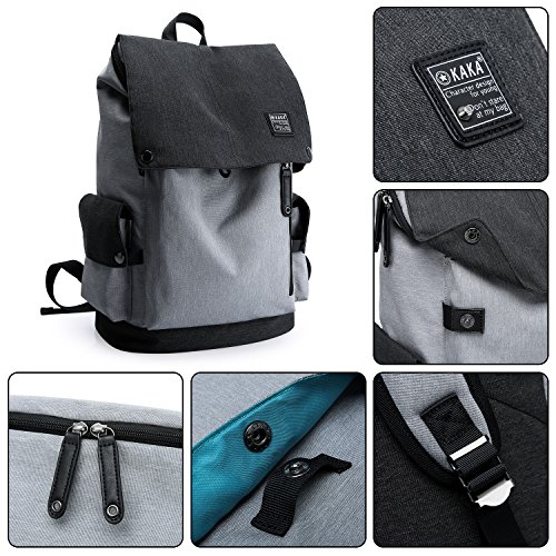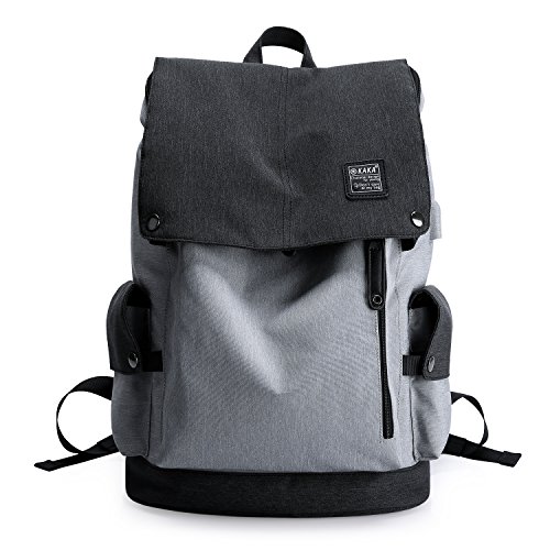 KAKA Lightweight Canvas Backpack Shoulder Daypack for 15.6-Inch Laptops Black Gray