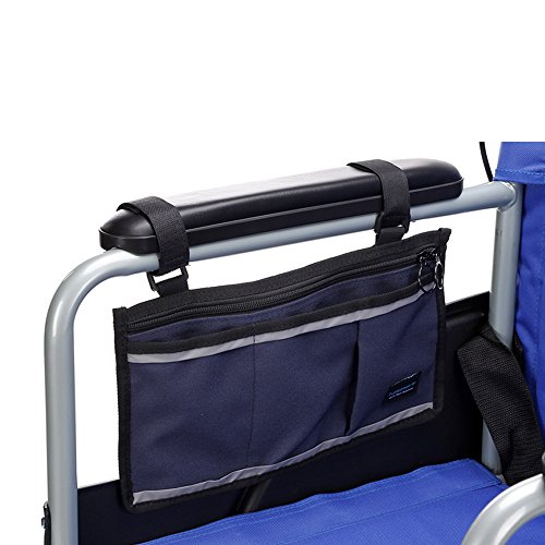 Product Weight: 0.19kg Colour:Blue Note: Actual colors may vary slightly from the color on your screen due to monitor color restrictions. Size: 32cm*18cm*1cm(12.6inch*7.0inch*0.4inch) User:Disabled and Elderly FEATURES: Material: Polyester - Durable,lightweight, waterproof, strong but lightweight. The main bag of the wheelchair bag can hold a purse, or necessary medical supplies.protecting your items from unexpected spills Two convenient outer pockets provide easy access to everyday items such as drinks and snacks, glasses, electronic devices and more. Fits most standard wheelchairs, walkers, armchairs and transport chairs. When cleaning, only need to wipe with a rag. Warranty: 1,When you receive the wheelchair bag in use process have not understand, can use email to contact us, we will have a professional customer service team to solve your problem. 2,When you receive the wheelchair bag not satisfied need to apply for a refund, we will follow the amazon return policies to give you a refund.