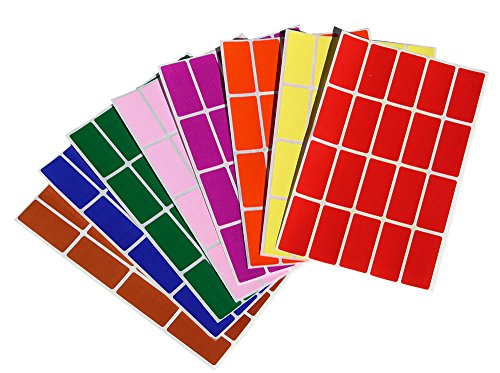 Permanent adhesive. High quality. The rectangle color coding stickers adhere firmly to most surfaces. In this package you will receive 640 rectangular stickers. 20 rectangle stickers per sheet. 32 sheets total. 4 sheets of each of the following colors: Green, Red, Blue, Purple,Yellow, Pink, Purple and Brown