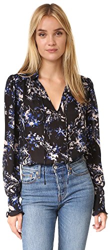 Product DescriptionLong sleeve printed silk blouse with tie front closure. Made in china. 100 percent silk0
