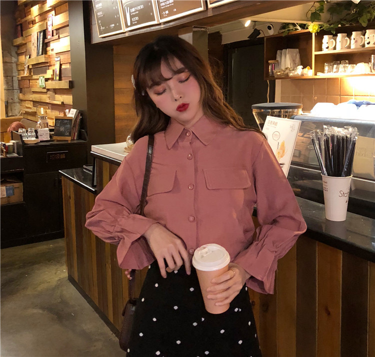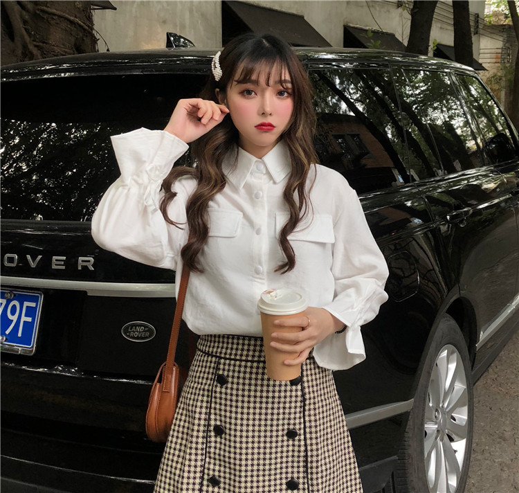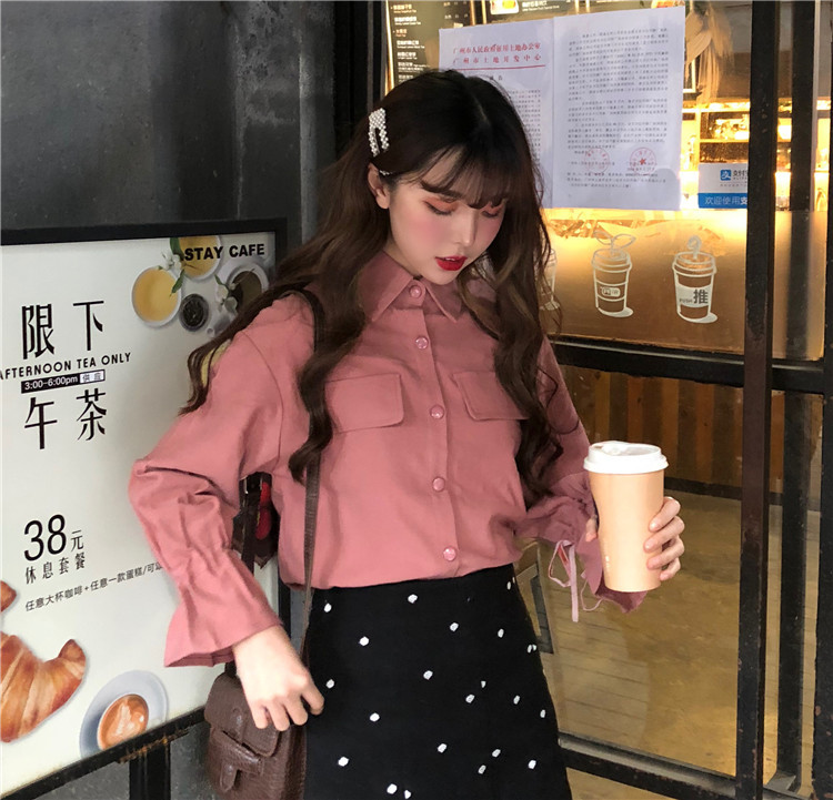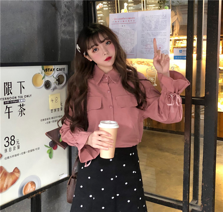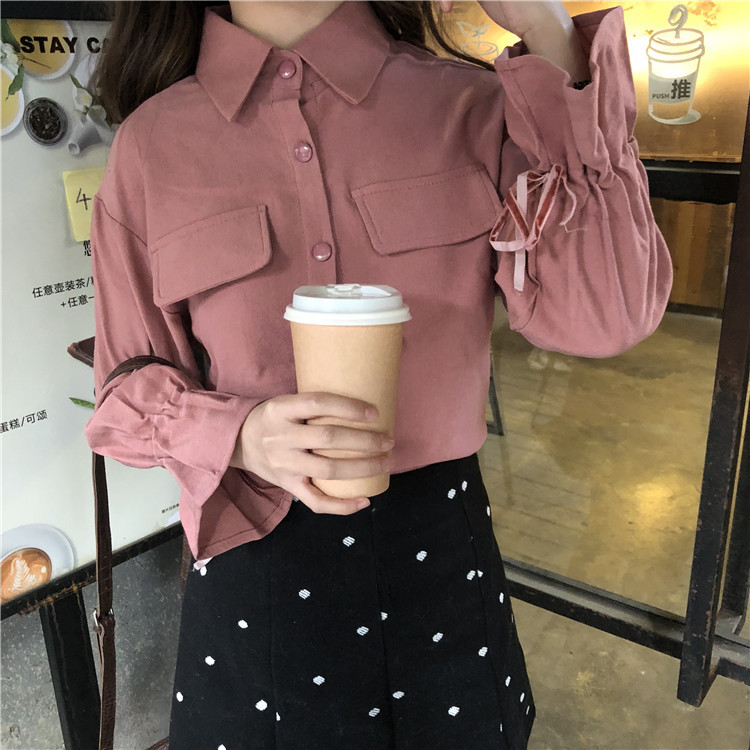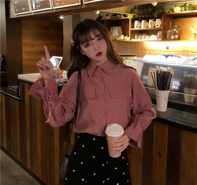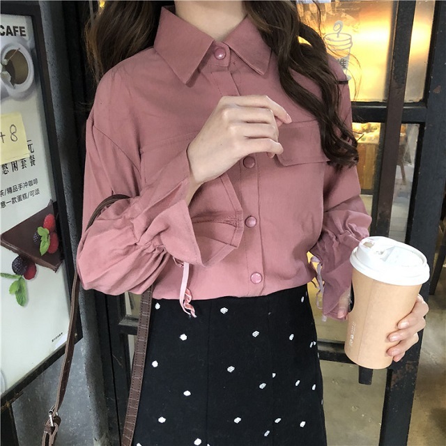 トレンドのキャンディースリーブを取り入れたシンプルなボタンダウンブラウスです♪