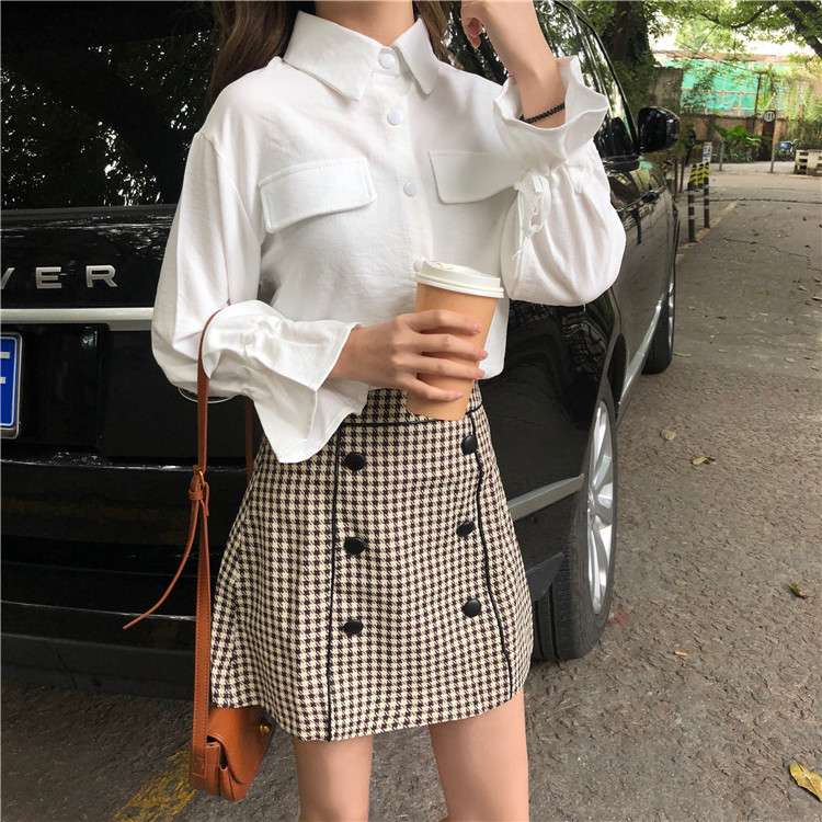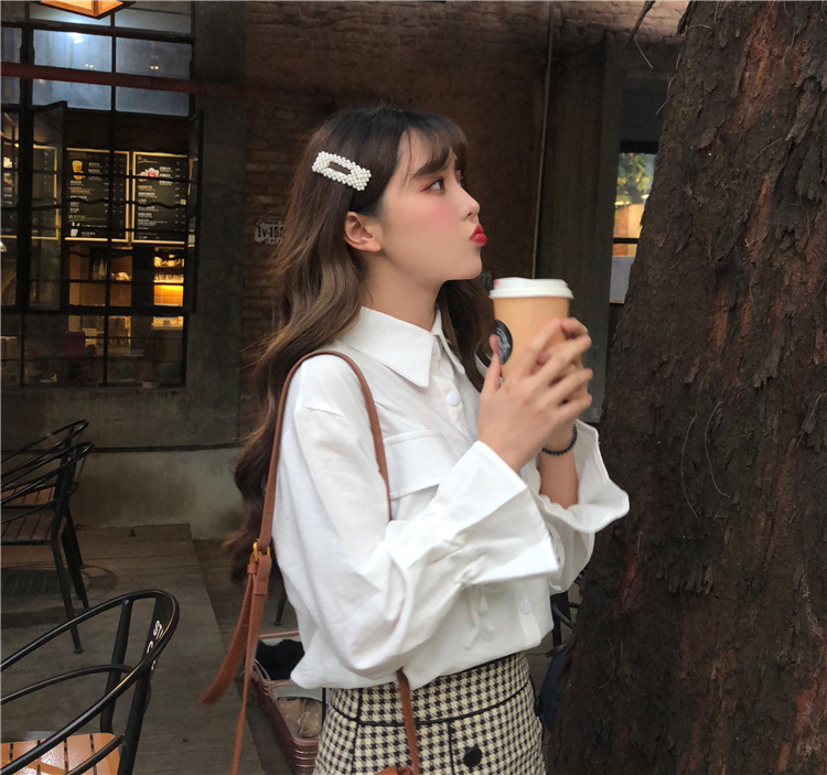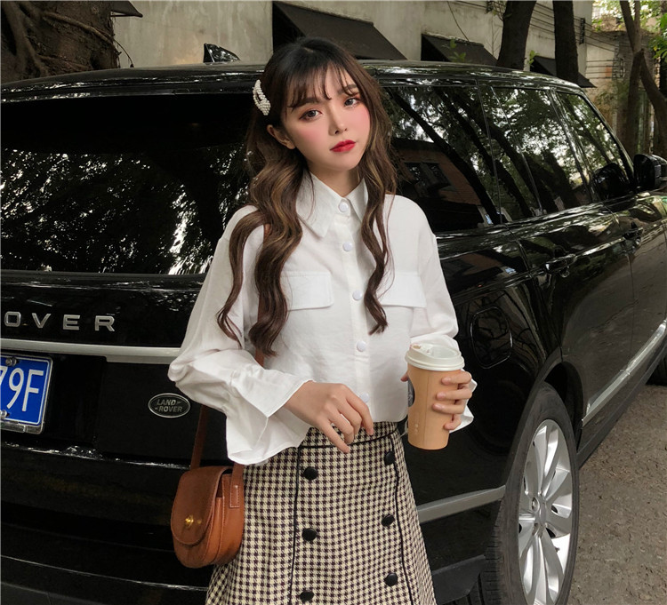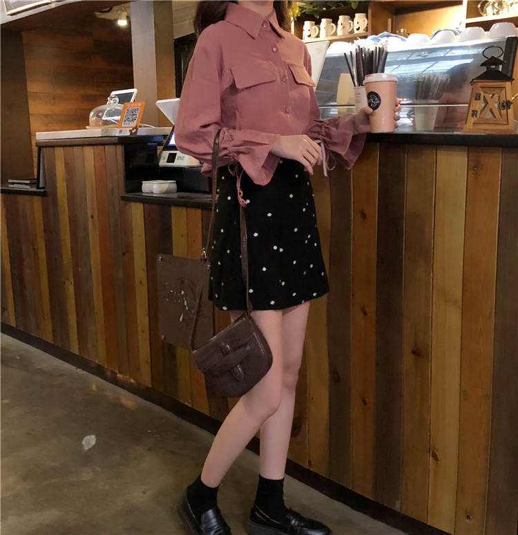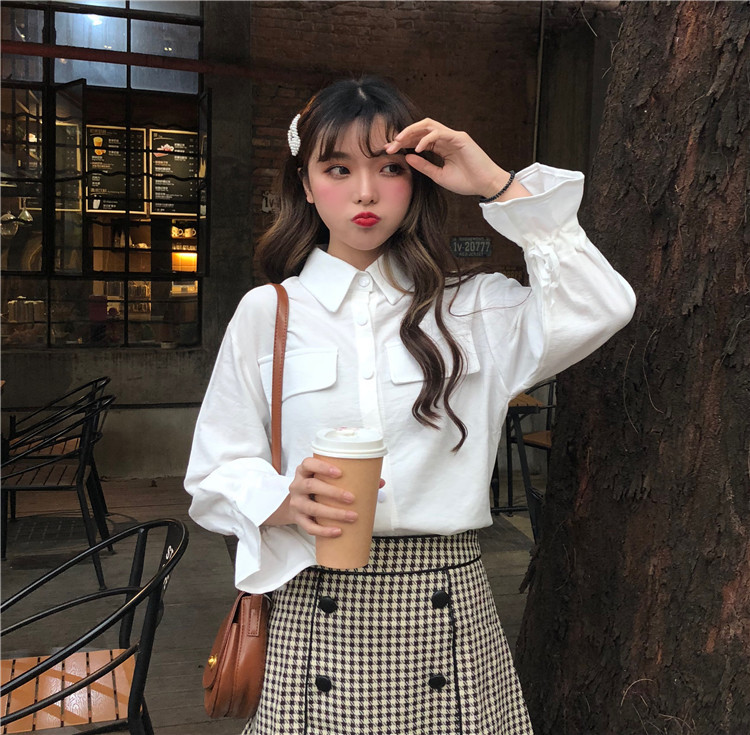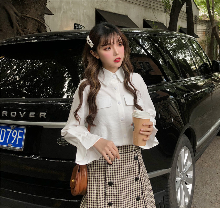 トレンドのキャンディースリーブを取り入れたシンプルなボタンダウンブラウスです♪